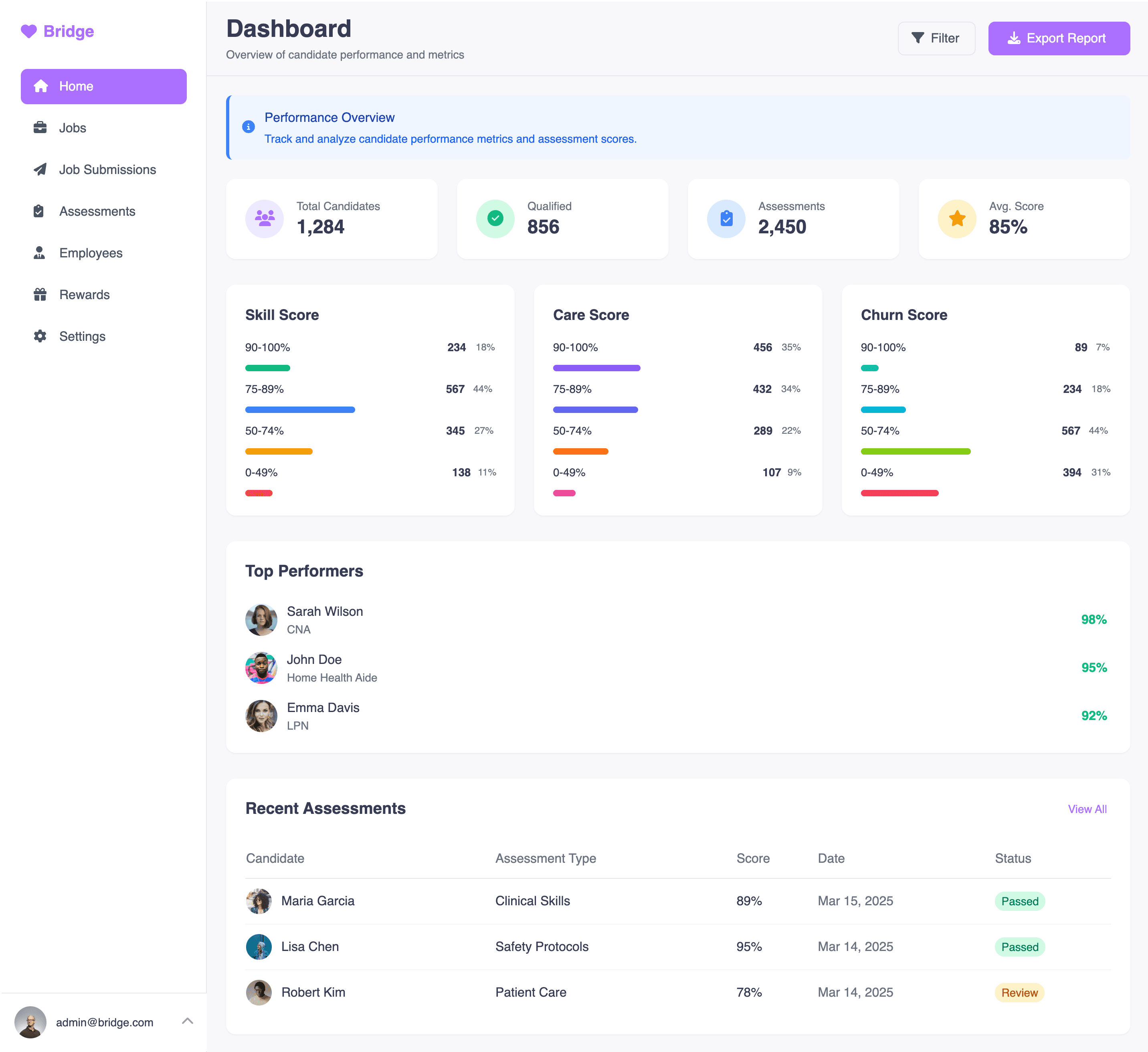 Save time and money by hiring only the most qualified long-term caregivers. Bridge AI vets your candidates, streamlines recruitment, and dramatically reduces the 80% industry turnover rate—all while you focus on what matters most: exceptional care.